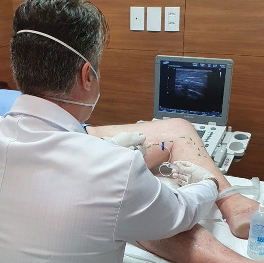 O procedimento realizado de maneira correta, com material e técnica adequada, é muito tranquilo. Quando necessário, o esfriamento da pele com um jato de ar gelado promove analgesia, na técnica que chamamos de crioescleroterapia.